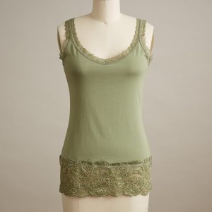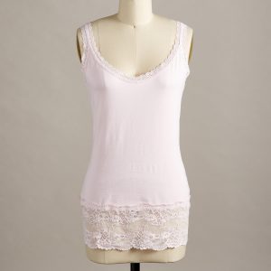 Our essential. lace-trimmed tank is slim-fitting for plenty of versatility. Pair with a sweater or tee for a glimpse of flirty lace. Cotton/spandex. Machine wash. Portugal. Exclusive. Sizes XS (0-2). S (4-6). M (8-10). L (12-14). XL (16-18). XXL (20-22). Approx. 26l.