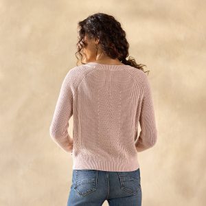 Our fabulously festive rib stitch sweater celebrates the winter season in textural beauty. with acid-washed color. hand-crocheted cuff details. embroidered sentiment. rib trim and crewneck. Simple and sassy. Combed cotton/nylon. Hand wash. Imported. Exclusive. Sizes XXS (00). XS (0–2). S (4–6). M (8–10). L (12–14). XL (16–18). XXL (20–22). Approx. 20.5l.