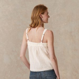 Vintage-inspired. oh-so-feminine camisole with beautiful tonal embroidery and lace details at neckline and front. Adjustable straps and elastic at back neck for comfortable fit. Cotton/viscose. Machine wash. Imported. Exclusive. Sizes XS (0?C2). S (4?C6). M (8?C10). L (12?C14). XL (16?C18). XXL (20?C22). Approx. 25l.